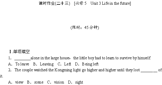 谷歌:2014届高考英语一轮复习方案(新人教版·北京专用):作业手册(23)必修5 Unit 3 Life in the future(附详细解析) Word版含答案