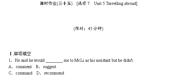 百度:2014届高考英语一轮复习方案(新人教版·北京专用):作业手册(35)选修7 Unit 5 Travelling abroad(附详细解析) Word版含答案