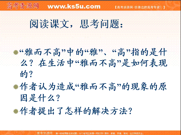 百度:2013学年高二语文课件:论雅而不高3 (粤教版必修4)