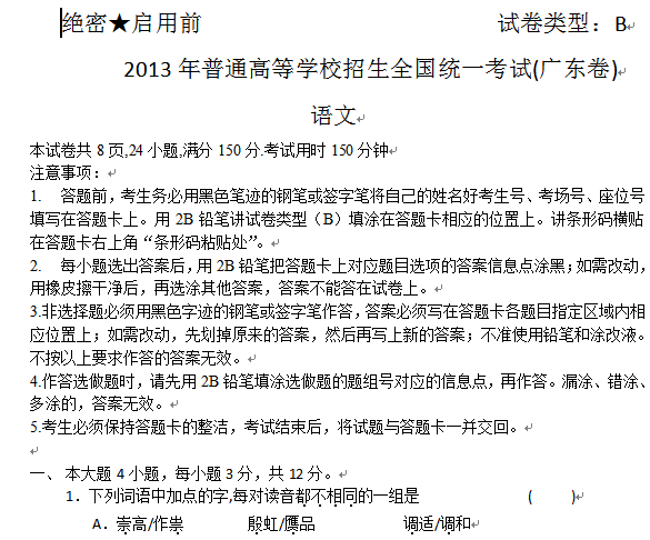 百度:2013年高考真题——语文(广东B卷) Word版含答案
