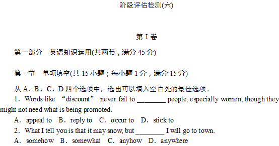 百度:2014届高考英语一轮复习方案(课程标准卷地区专用外研):阶段评估检测 (6)(附详细解析) Word版含答案
