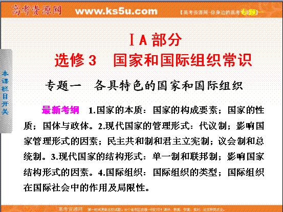 百度:高三政治一轮复习课件:专题一 各具特色的国家和国际组织(选修3)