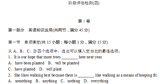2014届高三英语(第1轮)阶段检测卷(四)(江西)
