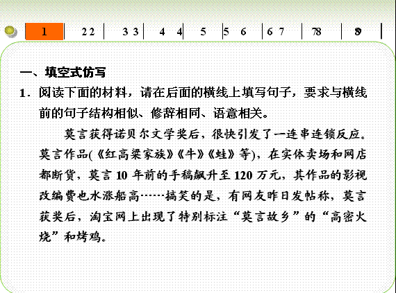 有道:(山东专用)2014版高考语文大一轮复习讲义 语言 考点针对练三 仿用句式(含正确运用常见的修辞手法)鲁人版