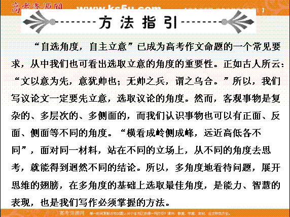 有道:2014高考语文一轮复习精品课件(新课标):6-10 学会议论文选取立论的角度