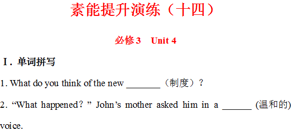 谷歌:《广东》2013版高中英语全程复习方略 素能提升演练(十四) 必修3 Unit 4(人教版) Word版含解析