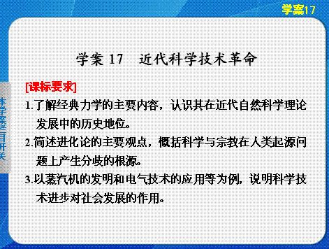 谷歌:《配套课件》 2013-2014学年高二历史必修三学案导学(岳麓版) 第三单元 从人文精神之源到科学理性时代 学案17