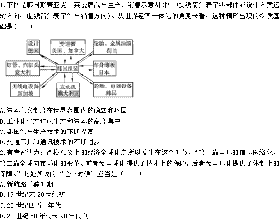 百度:《精品专递》高中历史人教版必修2 第八单元 第24课 世界经济的全球化趋势 同步练测 Word版含解析