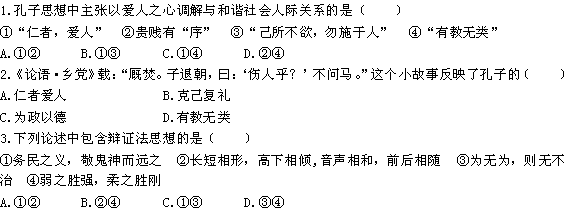 百度:《精品专递》高中历史岳麓版必修3 第一单元 第1课 孔子与老子 同步练测 Word版含解析