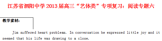 江苏省泗阳中学2013届高三英语 “艺体类”专项复习:阅读专题6