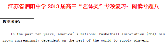 江苏省泗阳中学2013届高三英语 “艺体类”专项复习:阅读专题8