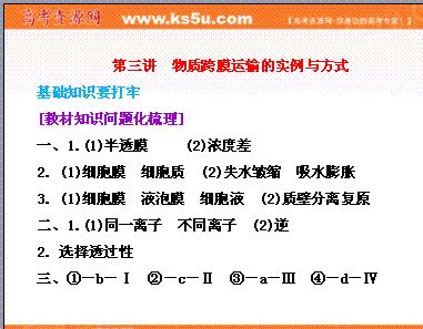 谷歌:2014高考生物一轮复习配套课件:必修1 第二单元 第三讲 物质跨膜运输的实例与方式