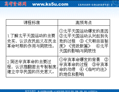 有道:重庆市万州分水中学2014届高三历史一轮复习课件 知识清单 第三单元 第6讲 太平天国运动和辛亥革命(新人教版)