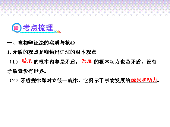 有道:《全程复习方略》2014届高考政治一轮复习精品课件: 4.3.9 唯物辩证法的实质与核心 新人教版必修4