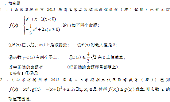 百度:山东省2014届理科数学一轮复习试题选编42:函数的最值与导数(教师版) Word版含答案