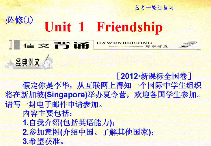百度:2014 名师相伴 高考英语(新人教)一轮复习配套基础回归专题复习学案:必修一全册(158张ppt)