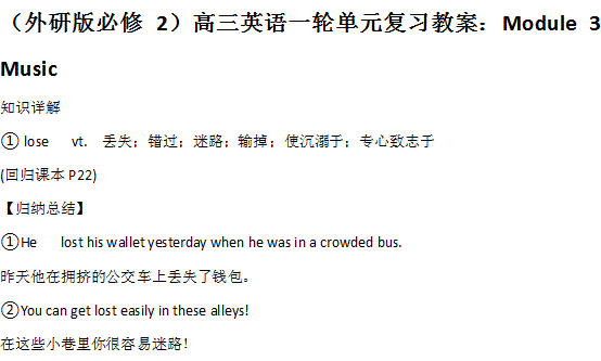 有道:(外研版必修2)2014高三英语一轮单元复习教案:Module 3 Music Word版
