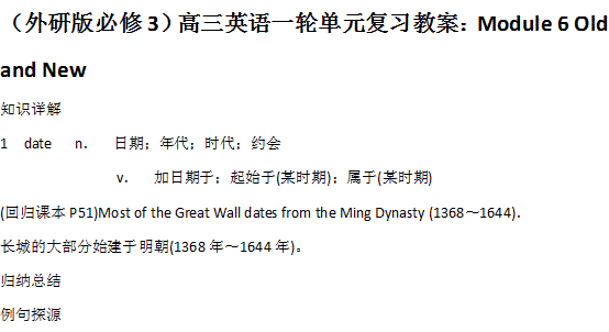 (外研版必修3)2014高三英语一轮单元复习教案:module 6 old and new