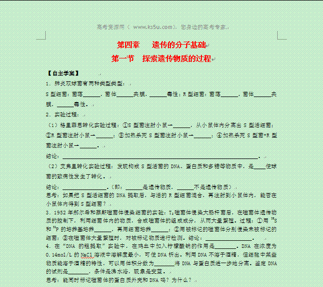 谷歌:2014年高考生物二轮复习教案:4.1《探索遗传物质的过程》苏教版必修2