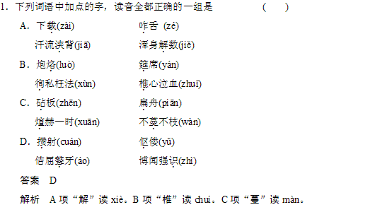有道:2014届高考语文二轮复习考点专题复习训练(大纲版):每天一日练 第1天 Word版含答案