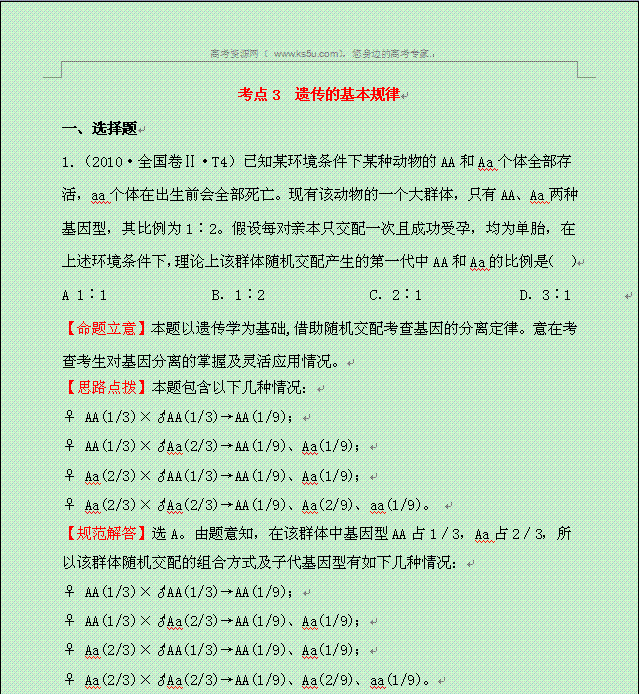 谷歌:2014届高三生物复习素材:考点3 遗传的基本规律
