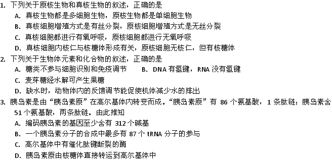 百度:河南省洛阳市2014届高三12月统一考试生物试题(B卷) Word版含答案