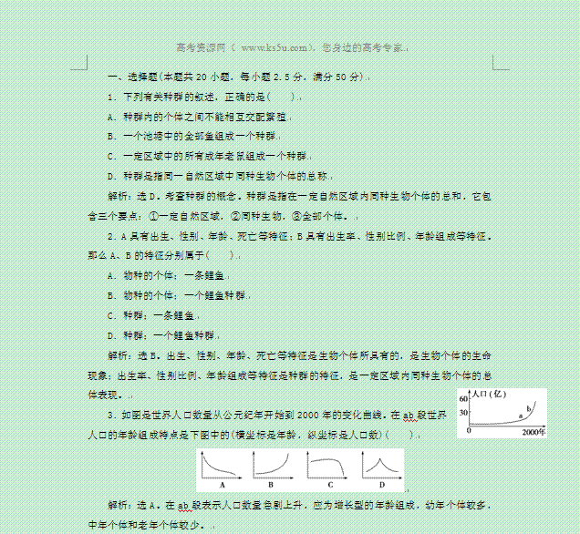 百度:2014年高考生物总复习过关演练素材:综合检测之种群和群落(必修3新人教版)