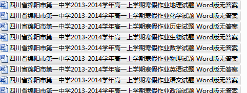 百度:四川省绵阳市第一中学2013-2014学年高一上学期寒假作业全科试题 Word版无答案