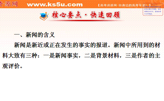 百度:《一轮收尾,二轮起航》2014届高三语文名师点拨专题课件:新闻的文体与社会影响