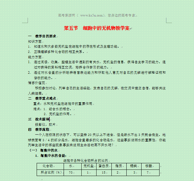 百度:2014届高三生物《细胞中的无机物》复习教案:2 新人教版必修1
