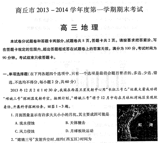 百度:河南省商丘市2014届高三上学期期末统考试题 地理 扫描版含答案