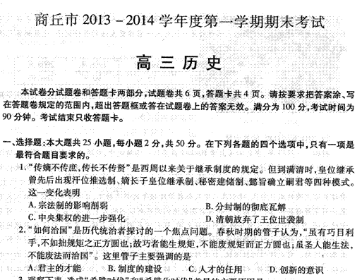 百度:河南省商丘市2014届高三上学期期末统考试题 历史 扫描版含答案