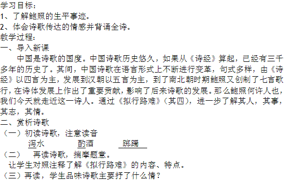 有道:天津市宝坻区大白庄高级中学高二语文中国古代诗歌散文欣赏《拟行路难》学练稿