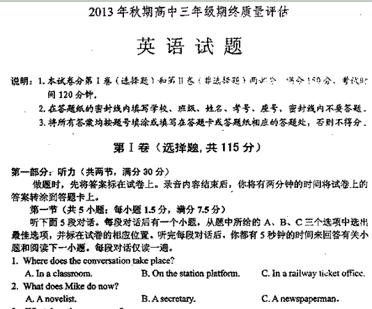 百度:河南省南阳市2014届高三第二次联考(期末质量评估)英语试题(高清扫描答案文档版)