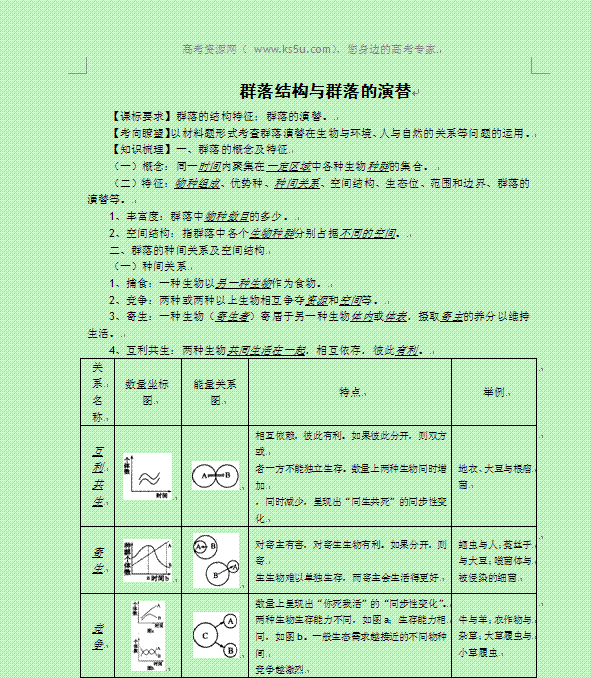 百度:2014年高考生物同步讲练结合素材:群落的结构和演替 必修三 中图版