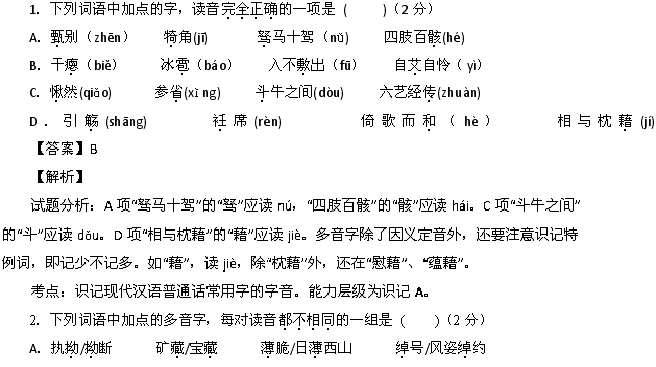 有道:《KS5U解析》江苏省启东市中学2013-2014学年高一上学期第一次质量检测语文试题 Word版含解析