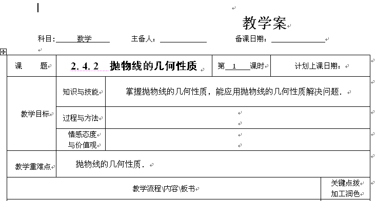 百度:江苏省宿迁市沭阳县潼阳中学高中数学教案:《2.4.2 抛物线的几何性质》 (苏教版选修2-1)