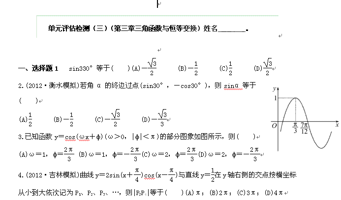 百度:四川省泸县第九中学高三数学复习 单元评估检测:第三章 三角函数与恒等变换 Word版含解析
