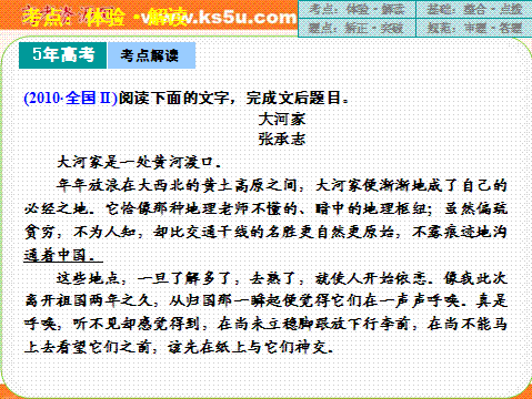 有道:2014届高考语文二轮复习考点专题复习课件(大纲版):现代文阅读 第二章 专题一 高频考点一