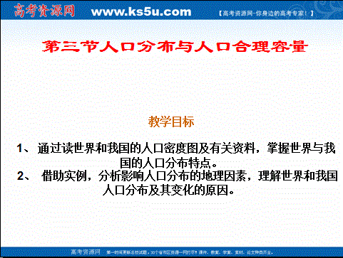 有道:山东省沂水一中高一地理 第六周第一课《人口分布与人口容量》课件 鲁教版必修2