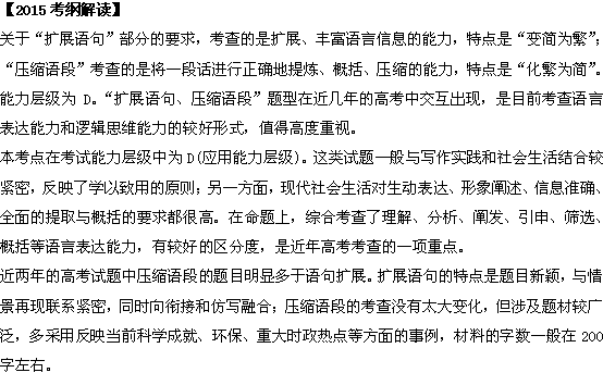 有道:2015年高考语文一轮复习精品教学案:专题06 扩展语句和压缩语段(解析版)