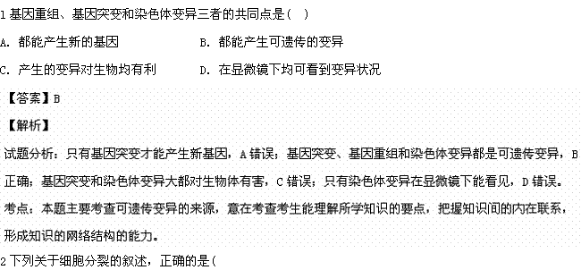 百度:《KS5U解析》山东省山师附中2014届高三第三次模拟考试 生物试题 Word版含解析