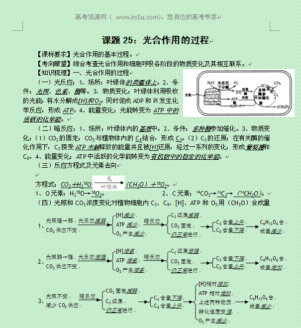 谷歌:2014年高考生物同步讲练结合素材:25 光合作用过程 中图版必修一