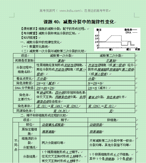 谷歌:2014年高考生物同步讲练结合素材:40 减数分裂中规律变化 中图版必修一