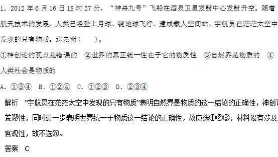 百度:2014届高考政治复习预测资料:33探究世界的本质 Word版含答案