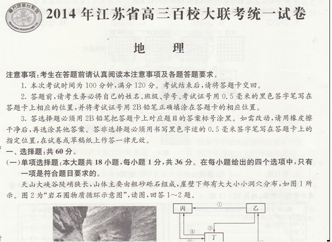 百度:江苏省2014届高三百校大联考 地理 扫描版含答案