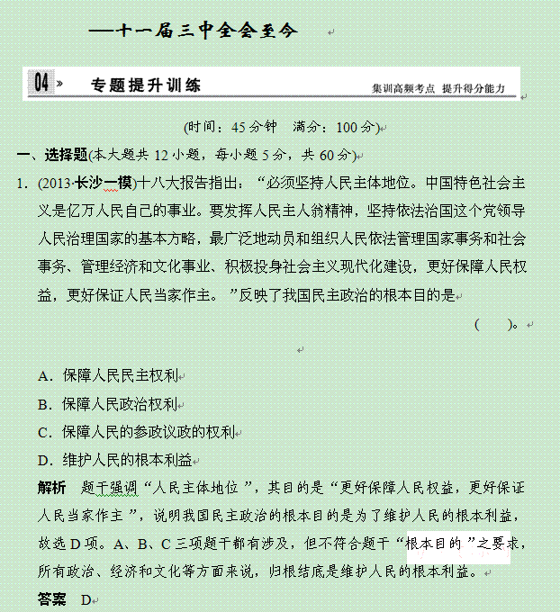 百度:2014届高考历史二轮复习仿真提升练习: 第8讲 中国社会主义现代化建设新局面的形成与发展——十一届三中全会至今(人民版) Word版含解析