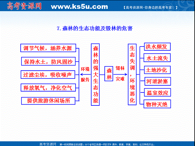 谷歌:2014版高中地理(人教版)全程复习方略总复习课堂教学素材库:知识点十五 环境保护 知识框架 7.森林的生态功能及毁林的危害