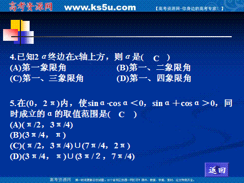 百度:湖南师范大学附属中学2014届高三数学总复习课件:第1课时 三角函数的相关概念