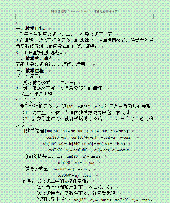 谷歌:江苏省常州市西夏墅中学高中数学教案:《诱导公式(2)》苏教版
